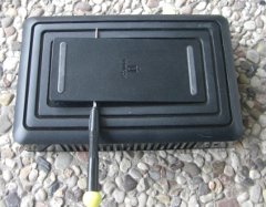 Remove the four screws which are securing the hard disk and unplug its connectors. Also remove the fan and the LED from the metal case. Now you can pull the mainboard out of the metal case, by moving it into the direction of the rear bezel. |